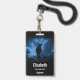 Abzeichen mit personalisiertem Namen mit einem Bild eines schwarzen Rabe in der Nacht, auf einem Baumzweig mit Runen oberhalb, der "schwarzer Rabe" steht. Moody und mysteriös Erscheinungsbild.