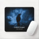 Mousepad mit einem Bild eines schwarzen Rabe in der Nacht auf einem Baumzweig mit Runen über dem steht "schwarzer Rabe". Moody und mysteriös Erscheinungsbild.