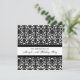 Individuelle 70. Geburtstagsparty Einladungen in elegantem und schicken Schwarz-Weiß klassischem Blumenmotiv-Damast-Muster. Fügen Sie Ihren Namen und Ihre Party-Details für eine einzigartige und stilvolle 70. Geburtstagsfeier-Einladung hinzu.