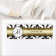 Ausgeklügelte Schwarz/Weiß Vintag Damask Muster Rücksendeadressen-Aufkleber mit goldfarbenem Akzent sind mit dem Monogramm-Initial und dem Namen und der Rücksendeadresse auf einer matten Oberfläche vollständig anpassbar. Ideal für die Behandlung von Einladungen für Hochzeiten oder für alle Briefkorrespondenz. Design von Elke Clarke© Graphics lizenziert.