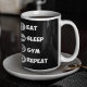 Black Eat Sleep Gym Wiederholungssymbol Tasse
