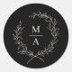 Black Elegant Laurel Wreath Monogram Runder Aufkleber