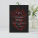 Teilen Sie wichtige Details mit diesem dunklen und stimmungsvollen Black Floral Heart Handfasting Wedding Reception Design mit einer blutrot-realistischen Herz blühende Blume auf einem schwarzen Hintergrund.
