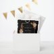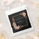 Diese schwarz-florale Gastgeschenk Hochzeit-Tasche mit Braut- und Bräutigam-Namen, Hochzeitsdatum und Dankeschön ist mit handbemalten Blätter in Aquarellfarben in Orange und Terrakotta, cremefarbenen und beigen Dahlien sowie wunderschönen rostfarbenen Rose, die rund um einen goldenen Rahmen aus Imitat auf schwarzem Hintergrund angeordnet sind, ausgestattet. Finden Sie passende Artikel in der Black Herbst Romance Collection.