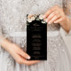 Diese schwarze, formelle, königliche Dinner-Karte ist perfekt für eine moderne Hochzeit. Das Design ist in Aquarellfarbe, Rosa, Weiß und eleganten Blume mit smaragdgrünen Blätter gehalten. Dieses Menü kann für Hochzeitsempfang, Probe Dinner, Brautparty oder jede Veranstaltung verwendet werden.