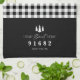 Black Gingham Zuhause Sweet Zuhause Custom Zip Code Küchentuch. Personalisieren Sie die Vorlage mit Postleitzahl, Ort und Staat. © Kimbellished, LLC