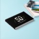 Modernes 50. Geburtstagsparty Gästebuch mit einem stilvollen schwarzen Hintergrund, der in jede Farbe geändert werden kann, der Titel "50", sowie Name und Datum in echter Goldfolie. Dies kann in Rose Gold oder Silber geändert werden.