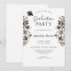 Diese elegante Graduiertenparty-Einladung zeichnet sich durch ein Blumendesign in Schwarz-, Weiß- und Goldtönen aus, mit einem stilvollen Script-Schriftart für den Namen des Absolventen. Eine Graduiertenkappen-Illustration fügt eine feierliche Touch hinzu, während das Layout Raum für personalisierte Details wie den Namen, die Schule, das Datum, die Zeit, den Ort und die UAWG bietet. Ideal für einen anspruchsvollen und modernen Abschluss.