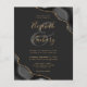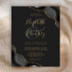 Ein schwarzes Aquarell-Design bestickt mit Imitaten Gold Glitzer erscheint in zwei Ecken dieses eleganten Design. Personalisieren Sie es mit den Namen der Paare in goldfarbenem Handschriftenskript über einen großen grauen Ampersand. Fügen Sie die Hochzeitsdetails in goldfarbenem Kupferblech und kursiven Schriftart auf einem schwarzen Hintergrund hinzu. Auf der Rückseite ist ein passendes schwarz-goldfarbenes Agerat-Design zu sehen. HINWEIS: Umschläge sind nicht automatisch in diese Einladungen mit dem Budget eingeschlossen. Bitte denken Sie daran, die Option "weiße Umschläge" zu wählen!