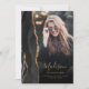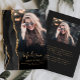Diese trendige 2025 Abschluss-Ankündigung bietet eine schwarze Aquarellfarben-Achatgrenze mit Imitats Gold Glitzer Highlights. Der Vorname des Absolventen erscheint als elegantes, goldfarbenes Handschriftenüberlagern auf einem vertikalen Foto, zusammen mit dem Nachnamen, der Schule und dem Klassenjahr in Kupferplatte Schriftart. Ein Filter mit schwarzem Farbverlauf unterstützt den Pop. Ein zweites, horizontales Foto erscheint auf der Rückseite, zusammen mit der Ankündigung und Details in goldfarbenem Text auf dunkelschwarzem Hintergrund.