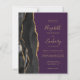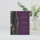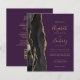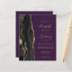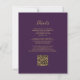 Die links Seite dieses eleganten, modernen Hochzeitseinladens besticht durch einen schwarzen Aquarellrahmen, der mit vergoldetem Imitat bestickt ist. Der anpassbare Text kombiniert goldfarbene Handschrift, Copperplate und kursive Schriftart auf einem lila Hintergrund. Die Rückseite bietet Platz für Hochzeitsdetails auf einem soliden lila Hintergrund, zusammen mit einem QR-Code, den die Gäste scannen können, um Ihre Website und UAWG zu besuchen, was die Kosten für den Druck und Versand separater RSVP-Karten rette.