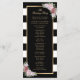 Élégant programme de mariage floral rayé noir et blanc avec des roses roses blanches. Éléments correspondants disponibles.