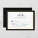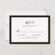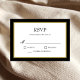 Schwarz-Weiß mit einer Touch von Gold klassische Hochzeit RSVP Antwortkarte. Eleganter Block- und Skripttext innerhalb eines schwarzen und schattigen Goldrands. Schwarzer Rücken.