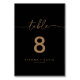 Diese klassische Tischnummer aus schwarzem Gold ist perfekt für eine moderne Hochzeit. Das einfache und elegante Design zeichnet sich durch klassische und extravagante Schriftzeichen in Gold aus. Das ist eine zweiseitige Tischnummer. Fügen Sie jede benötigte Tischnummer individuell in Ihren Warenkorb.