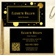Visitenkarte mit schwarz und goldbedrucktem Konfetti-Design. Wunderschön für einen Innenarchitekten, Veranstaltungsplaner, Kosmetiker oder jeden, der nach einem modernen stilvollen Effekt sucht.