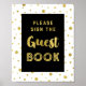 Bitte unterschreiben Sie unser Gästebuchplakat für Babydusche, Brautparty oder Hochzeiten in Schwarz und Weiß mit goldenen Konfetti-Mustern und handgeschriebenen Stiltexten. Ideal für eine Babydusche, Hochzeit, Geburtstag oder Brautparty.