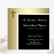 Elegantes Schwarz-Gold Kreuz In Loving Memory Mann oder Frauen Beerdigung und Gedenkfeier Service Ankündigungen und Beilagen. Sie können das Kreuz kleiner oder größer machen, es an einen anderen Ort verschieben oder löschen, indem Sie einfach den Knopf "Anpassen!" wählen, um Ihre Veranstaltungsdetails, den Stil des Schriftartes, die Größe und Farbe des Schriftartes und den Wortlaut hinzuzufügen. Bitte beachten Sie: Alle Aufkleber, Karten und Einladungsdesigns, die Sie auf Zazzle finden, sind gedruckte Grafiken ohne wirkliche Juwelen, Bögen, Höhen, Prägen oder Beilagen.