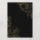 Schwarz goldfarbene Karte für das Abendessen mit Blumenkost. Elegantes modernes Design mit botanischen Kontur Zeichnungen Akzente und Typografie Drehbuch Schriftart. Eine trendige, flache 12x18-Karte, die sich perfekt für ein stilvolles Fest eignet.