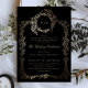 Black Gold Ebony Botanical Monogram Wreath Wedding Einladung