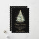 Elegante moderne Schwarz-Gold-Kalligrafie-Script Frohe Weihnachtsbaum Non Foto Weihnachtskarten. Diese festliche, einfache Weihnachtskarten mit einem Aquarell-Weihnachtsbaum mit Goldbällen und Konfetti und einem "Frohen Weihnachtsgrüßen"-Grußtext, der in einem handgeschriebenen Schriftart in Gold auf schwarzem Hintergrund geschrieben ist. Auf der Rückseite goldener Glitzer Schnee oder glitzernde goldene Konfetti auf schwarzem Hintergrund. Diese festlichen Weihnachtskarten sind eine großartige Möglichkeit, die Liebsten daran zu erinnern, dass sie sich in dieser Winterferien-Jahreszeit an sie erinnern.