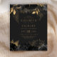 Ein elegantes botanisches Design mit schwarzen, blumengeschmückten Rändern oben und unten, bestickt mit goldenen Imitaten und Blätter aus Glitzer, die den klassischen goldfarbenen Text auf einem dunklen Hintergrund abrahmen. Auf der Rückseite der Karte wird ein passendes Blumendesign angezeigt.