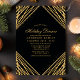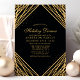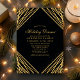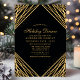 Black Gold Geometric Abstrakt Lines Urlaub Abendessen Einladung. Dieses elegante, moderne, abstrakte Design besticht durch funkelnd Goldlinien mit Konfetti auf einem soliden schwarzen Hintergrund.