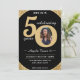 Schwarz-Gold Glitzer Geburtstagsfeier Party Einladung für einen 50-jährigen. Funkelnd Glasdesign ideal für Frauen. Passen Sie das Alter an, um Ihren Anlass zu Anzug und fügen Sie ein persönliches Foto des Empfängers. Ideal für einen 50. Geburtstag oder eine Geburtstagsfeier für einen fünfzigjährigen Geburtstag.