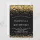 Eine moderne, stilvolle und glamouröse Einladung für eine 40. Geburtstagsfeier (oder jedes Alter). Ein schwarzer Hintergrund mit Imitaten vergoldeten Glitzer Staub. Der Name ist mit einem modernen handgeschriebenen Stilskript geschrieben. Personalisieren Sie Ihre Party-Daten und fügen Sie sie hinzu. Fügen Sie mehr Text auf der Rückseite hinzu, oder löschen Sie, wenn nicht gewollt.