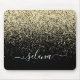 Vorname des Monogramms in einem extravaganten Signaturzeichen auf dem schwarzen goldenen Mauspad.