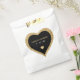 Schwarz-Gold Glitzer Herzbeutel Gastgeschenk Hochzeit. Personalisieren Sie es mit Ihren Veranstaltungsdetails.