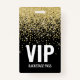 Black Gold Glitzer VIP Pass mit QR Code ID Abzeichen. Passen Sie bei Bedarf die Größe des Schriftartes an. Alle Details sind anpassbar.