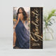 Schwarzes und goldenes Abschlussdesign mit einem leuchtenden Staubhintergrund, fließender Schriftname-Anzeige und raffiniertem Layout. Kombiniert mit einem vollständigen Foto auf der Vorderseite und sauberen Veranstaltungsdetails auf der Rückseite. Ideal für die Ausrichtung einer gepflegten Abschlussfeier mit Abendessen, Getränken und Tanz.