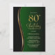 Mit dieser modernen, schwarzen, goldenen und grünen 80. Geburtstagsfeier laden Sie Ihre Freunde und Lieben ein. Der anpassbare Textbereich in dieser Einladungsvorlage ermöglicht es Ihnen, mühelos alle notwendigen Details für Ihre Geburtstagsfeier, einschließlich Datum, Uhrzeit, Veranstaltungsort und UAWG, einzubinden. Für Ihre einmaligen Einladungen stehen verschiedene Papiertypen und Eckstile zur Verfügung, ebenso die Möglichkeit zum Download, wenn Sie ein digitales Format bevorzugen.