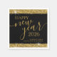 Festivals und Spaß Schwarz und Gold Glitzer Border Design Personalisiert Custom Printed Cocktail Napkins mit einer benutzerdefinierten Happy New Year 2023 Nachricht und Ihrem Namen, mit bearbeitbaren Hintergrundfarbe und Schriftart, sodass Sie Ihr eigenes einzigartiges Silvester Party Napkins, die eine kühne Tischumgebung auf einem klassischen modernen Tisch, Bar cart, oder Dessert-Tisch.
