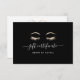 Die elegante Geschenkgutkarte zeigt zwei Zeilen Sondertext, die durch ein üppiges Paar von Wimpern und Bräunen in Imitaten Goldfolie auf einem schwarzen Hintergrund überragt werden. Fügen Sie auf der Rückseite Ihre gewünschte Geschenkgutschrift und die Kontaktinformationen für Unternehmen hinzu, die durch ein passendes Paar Wimpern und Augenbrauen ergänzt werden. Eine moderne und elegante Wahl für Salons, Make-up Künstler, Ästhetiker oder Lash- und Brow-Spezialisten.