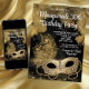 Schwarz-Gold-Maskerade-Party Einladung mit wunderschöner Goldschmuckmaske und Federn auf schwarzem und goldfarbenem Hintergrund. Sie können die Nummer nach Bedarf für Ihre Veranstaltung personalisieren - dies ist eine beliebig viele Geburtstage Einladung. Diese Party Einladung mit Goldmaskerade lässt sich leicht an Ihre Veranstaltung anpassen, indem Sie einfach Ihre Daten in den Schriftart-Stil, Farbe und Wortlaut Ihrer Wahl einfügen.