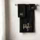 Enveloppez-vous dans le luxe avec le Black and Gold Modern Script Girly Monogram Nom Serviette de bain ensemble. Doté d'un design noir épuré et d'un monogramme doré et élégant en écriture moderne, cet ensemble de serviettes personnalisées ajoute une touche sophistiquée et élégante à toute salle de bains. Fabriquées en tissu doux et absorbant, ces serviettes sont à la fois fonctionnelles et à la mode, parfaites pour un usage quotidien ou comme un cadeau réfléchi pour quelqu'un de spécial. Elevez votre décor de salle de bain avec cette serviette chic et monogrammée qui respire l'élégance intemporelle.