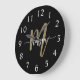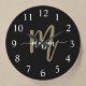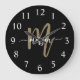 Black Gold Modern Script Monogram Name Große Wanduhr
