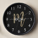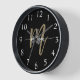 Erstellen Sie eine Anweisung mit der Black and Gold Modern Script Monogram Name Large Clock. Diese große Wanduhr kombiniert Luxus und Funktionalität mit einem eleganten Schwarz-Design und einem feinen Goldmonogramm in einem modernen Script-Schriftart. Mit seinem eleganten Design verbessert es nahtlos jedes Wohnzimmer, Büro oder Schlafzimmer und sorgt gleichzeitig für eine klare Zeitmessung. Das personalisierte Monogramm fügt Ihrem Raum eine einzigartige, stilvolle Touch hinzu, die es zum perfekten Geschenk für Ihre Wohngestaltung macht.