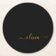 Black Gold Modernes Script Giron Monogram Name Runder Pappuntersetzer