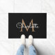 Chic schwarz und gold monogramm Türmatte. Sie können den Namen, das Monogramm personalisieren und den Schriftart und die Farben anpassen, um Ihr eigenes einzigartiges Design zu erstellen. Entwickelt von Thisisnotme©