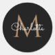 Black Gold Monogram Elegante Girly Script Runder Aufkleber