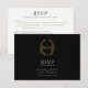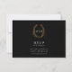 Create a refined and elegant wedding stationery suite with this gold botanical wreath RSVP card, featuring a delicate hand-drawn oval leaf design framing your custom monogram initials. Set against a striking black background with gold and white accents, this design offers a timeless, modern look perfect for formal, classic, or minimalist weddings. Easily personalize with your names, RSVP details, meal selections, and QR code for a seamless guest response experience. The simple yet sophisticated leaf wreath adds a natural botanical touch while maintaining a clean and luxurious aesthetic. Ideal for black tie weddings, evening celebrations, or couples seeking elegant monochrome and gold styling, this RSVP card pairs beautifully with matching invitations and coordinating items available in the collection.. © Original leaf drawing and design by Sarah Trett for www.mylittleedenweddings.com on Zazzle.
