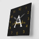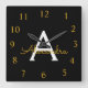Black Gold Script Monogram Girly Name Quadratische Wanduhr