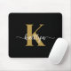 Dieses schlichte, elegante schwarze Mousepad mit Ihrem Vornamen in einem trendigen, weißen Script-Schriftart und Ihrem ersten Einstieg in einen modernen Mütze-Schriftart in Gold ist perfekt für Ihr Büro/Ihren Schreibtisch. Es ist stilvoll und trendig und dennoch sehr klassisch.