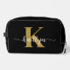Diese einfache, elegante, schwarze Toilettentasche mit Ihrem Vornamen in einem trendigen Script-Schriftart in Weiß und Ihr erster Einstieg in einen modernen Cap-Schriftart in Gold ist perfekt für Sie. Es ist stilvoll und trendig und dennoch sehr klassisch. Es wird für die Schule, den Fitnessraum, die Arbeit, Ihr Auto fabelhaft sein - Sie werden Ihr Make-up oder Ihre Pflegeprodukte an einem Ort behalten, wenn Sie sich vom Zuhause entfernt befinden.