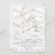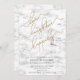 Dieses schöne, moderne Schwarz-weiße und Gold Script Marble Probe Dinner Invitation zeigt ein Imitat Goldblatt-Kalligraphie-Skript lesen "To Liebe, Lachen, and Happily Ever After" als das wichtigste Design Element, über einen Hintergrund von Imitaten Carrera Marmor. Das Design wird durch den modernen All Cap Sans Serif Schriftart ergänzt, der die Probe Abendessen Zeit, Datum und Lage detailliert beschreibt. Auf der Rückseite des Abendessens befindet sich auch eine Marmorstruktur aus Imitaten, die das schicke und raffinierte Ambiente vervollständigt.