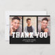 Carte "Merci" 3 photos en noir avec vos photos, votre nom, le nom de l'école et l'année de remise des diplômes. Contactez-moi pour obtenir de l'aide sur vos personnalisations ou pour demander des produits Zazzle correspondants ou coordonnés supplémentaires pour votre groupe.