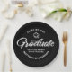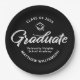 Be proud, rejoice and showcase this milestone of your favorite grad! Celebrate with these simple, modern yet retro, minimal custom paper plates. Bold, graphic, white handwritten script calligraphy, sans serif typography and a white hand drawn grad cap icon overlay a dramatic black background. Personalize the custom text with your grad’s name and address. Personalize the custom text with your graduate’s name, class year and school or special message. Available in 2 sizes: 7” or 9”, round or square. Matching invites, thank you cards, hand fans, banners, yard signs and other graduation goodies are also available in this retro and trendy collection. Guaranteed to add stylish fun to their special party!