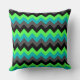 Ein 20" x 20" Kopfkissen mit elegantem Muster aus bunten Chevronen in Schwarz, Grau, Grün und Türkis.